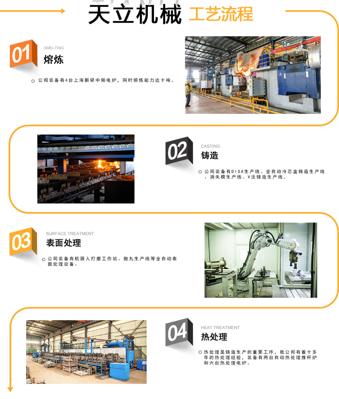 • 截止目前,公司已獲授權(quán)發(fā)明專(zhuān)利11項(xiàng)和實(shí)用新型專(zhuān)利32項(xiàng),《抗磨白口鑄鐵件》、《耐磨耐蝕鋼鑄件》等七項(xiàng)國(guó)家標(biāo)準(zhǔn)和兩項(xiàng)行業(yè)標(biāo)準(zhǔn)的主要起草單位,?在生產(chǎn)高鉻耐磨鑄件方面具有很強(qiáng)的技術(shù)優(yōu)勢(shì)和豐富的生產(chǎn)經(jīng)驗(yàn)